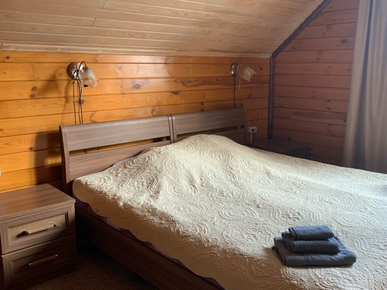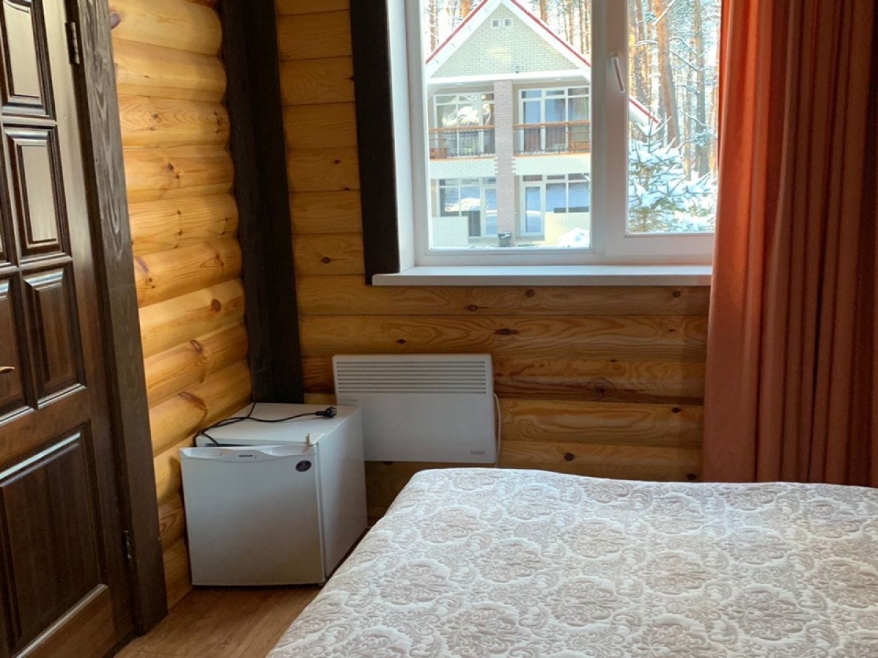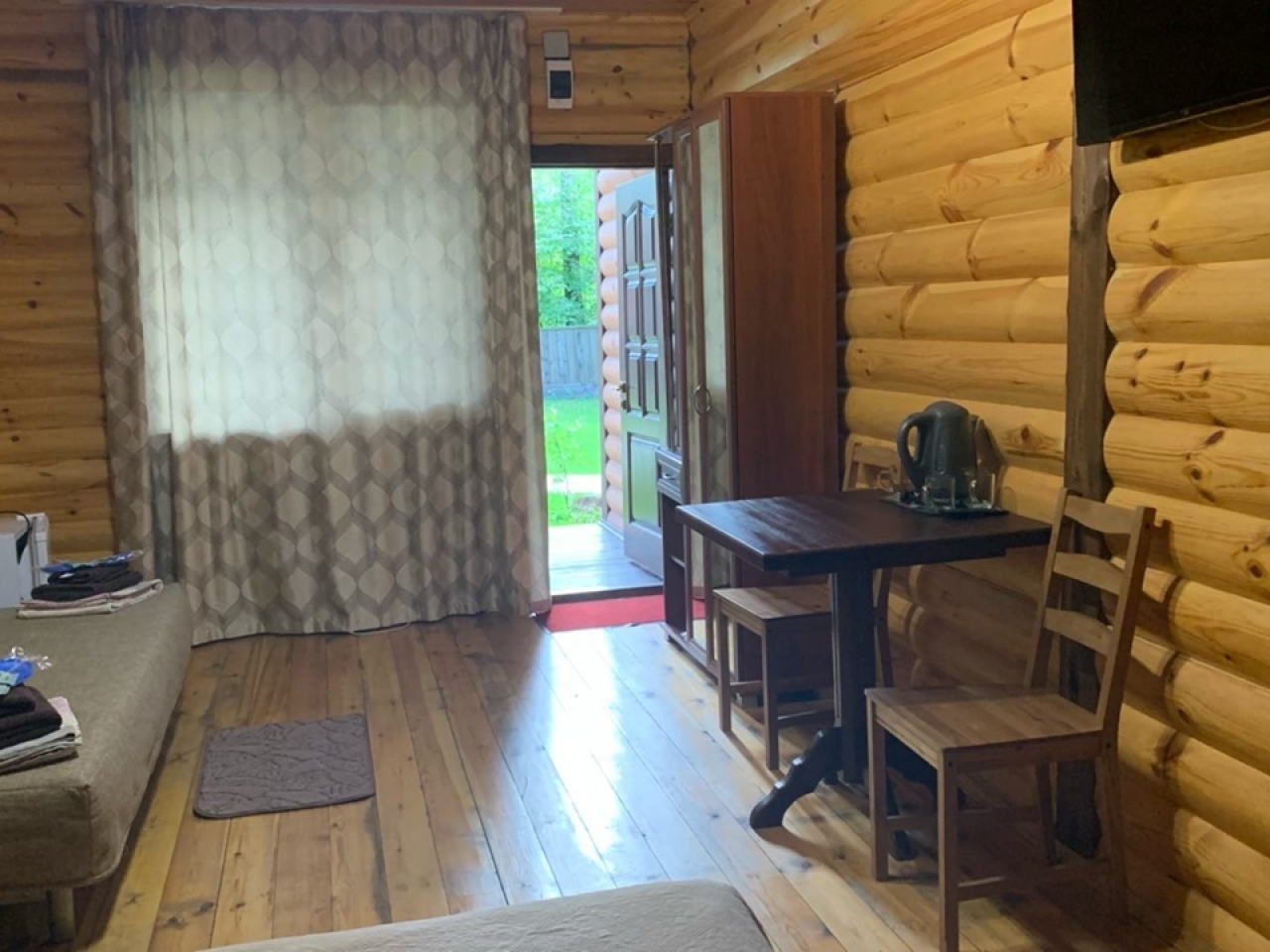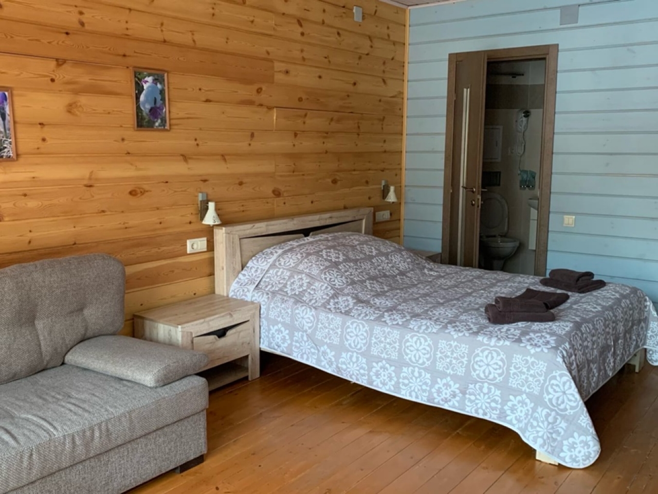 Полулюкс с отделкой под дерево, большие "в пол" окна. Имеет балкон или веранду с видом на Катунь или территорию отеля и санузел с душевой кабиной. Укомплектован: двухспальная или две односпальные кровати, две тумбочки, диван, стол, два стула, прихожая, шифоньер, чайник, холодильник, телевизор, С/У, фен, халаты. туалетные принадлежности.